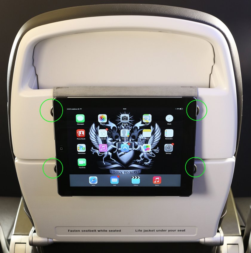 BA PR picture with iPad and metal clips Published September 29, 2014 at 841 × 847 in Is that it? Taking a look at BAs seat back iPad holder