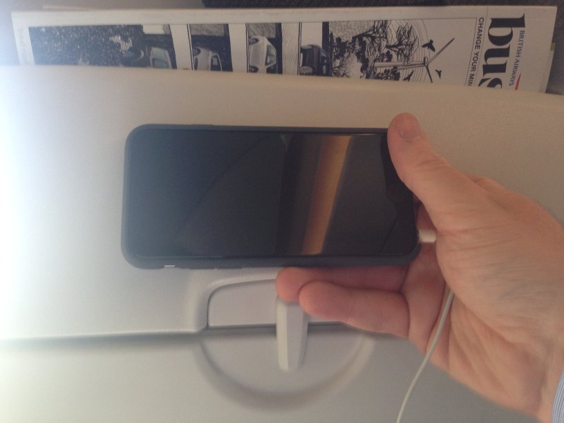 Apple iPhone 6 held up to BA new seat back Published September 29, 2014 at 816 × 612 in Is that it? Taking a look at BAs seat back iPad holder